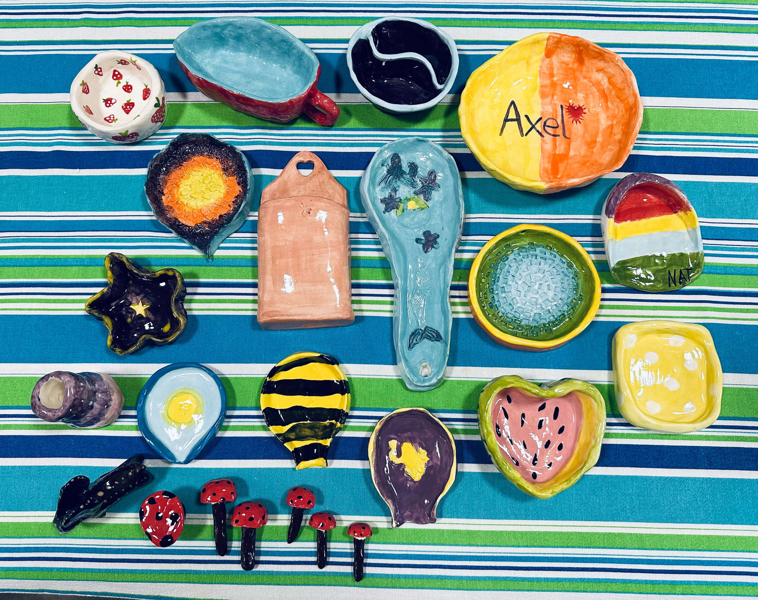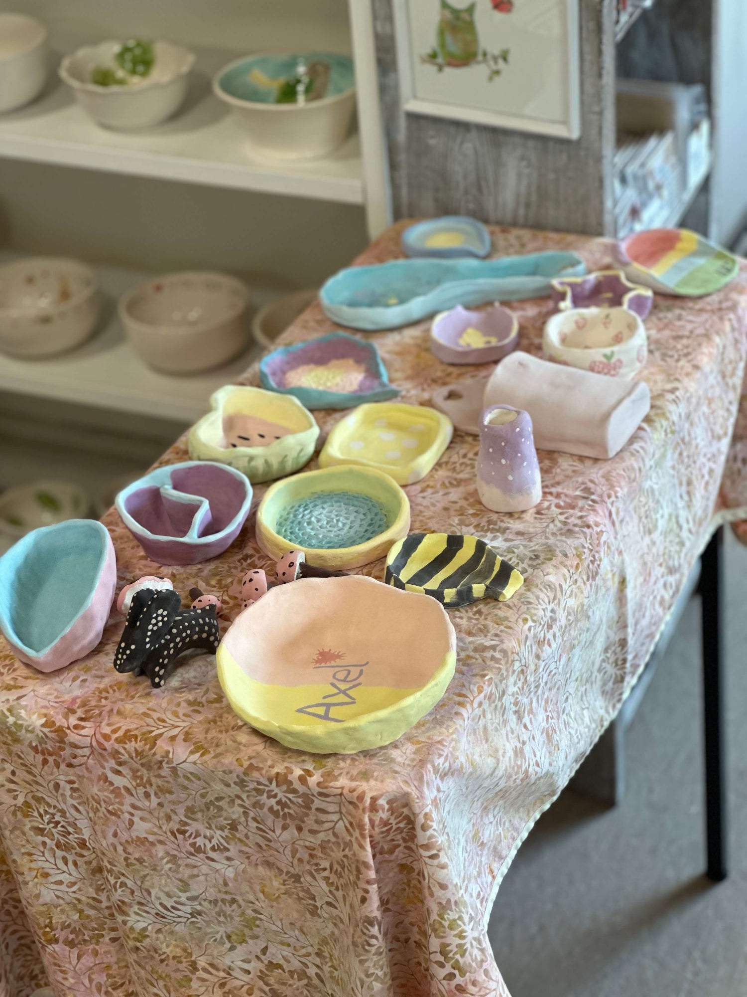 - Second Firing for up to 5 pieces (extra pieces will have an additional cost of $2 and up per piece to glaze and fire)