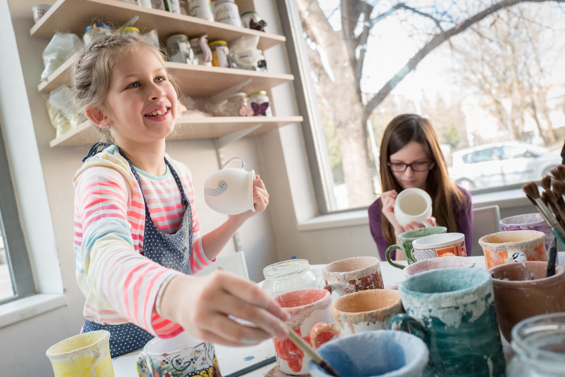 Includes: A standard size mug, 2 hours of class time, non-toxic and food safe underglazes, final glazing and firing
