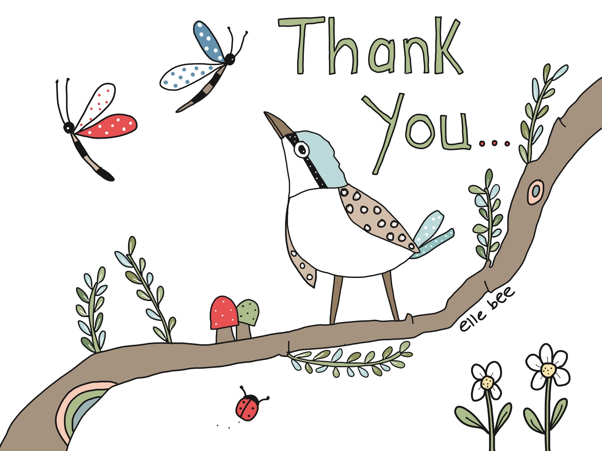 Thank you Bird on branch greeting card